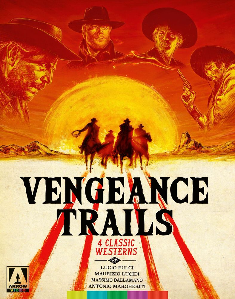 - Arrow’s Blu-ray is included in the “Vengeance Trails: Four Classic Westerns” box set with Massacre Time (1966), My Name Is Pecos (1966) and Bandidos (1967). It includes a booklet with writing by Howard Hughes and a double-sided fold-out poster. Reissued without booklet and poster (2022/01/25).