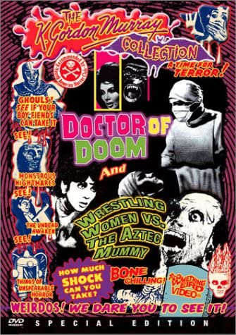 - Image’s “Something Weird Video: The K. Gordon Murray Collection” DVD includes a booklet with writing by Charles Kilgore and Rob Craig (“The Wonder World of K. Gordon Murray”). It also includes Doctor of Doom (1963). Trailers included: The Vampire’s Coffin (1958) / The Robot vs. the Aztec Mummy (1958), The Black Pit of Dr. M (1959), Little Red Riding Hood (1960), Little Red Riding Hood and the Monsters (1962), Face of the Screaming Werewolf (1964) and Creature of the Walking Dead (1965). TV spots included: The Phantom in the Red House (1956), The Vampire (1957), The Blood of Nostradamus (1962), The Brainiac (1962), The Genie of Darkness (1962), Samson vs. the Vampire Women (1962), The Witch’s Mirror (1962), The Curse of the Crying Woman (1963), The Invasion of the Vampires (1963) and The Living Head (1963).