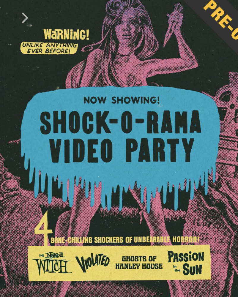 - AGFA’s “Shock-O-Rama Video Party” Blu-ray also includes The Naked Witch (1961), Passion in the Sun (1964) and Ghosts of Hanley House (1968).